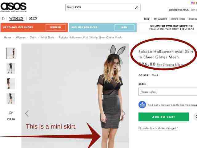 midi skirt指的是膝盖以下脚腕以上长度的衣服,而mini skirt是指长度在大腿部左右(膝盖以上)的。下面这张图完全就犯了常识性错误。