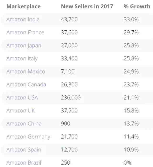 无论在新卖家方面,还是考虑到其中的某一时间段内的销售额,印度都是目前增长最快的零售市场。亚马逊已经承诺将在印度投资数十亿美元,考虑到亚马逊在印度只经营一个市场,估计增长还会继续。