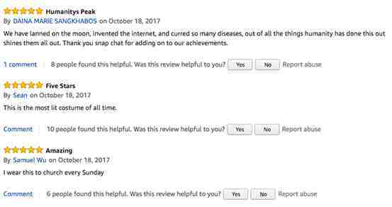 尽管10月18日是该服装的首个销售日,但一些热情的用户已经在亚马逊上发布了评论: