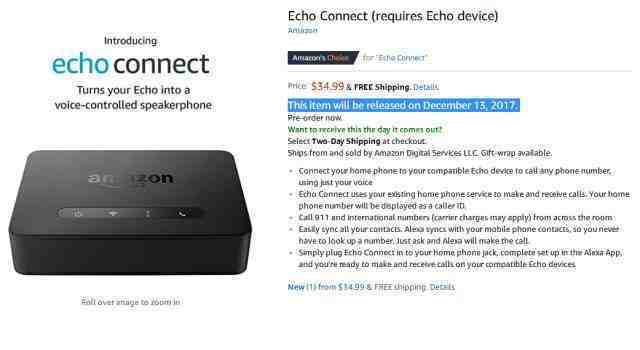 小编前往亚马逊寻找到这款商品,Echo Connect用户能利用Echo给固话打电话。目前,Echo已经可以在彼此之间进行网络通话,但那更像是一种对讲机系统。