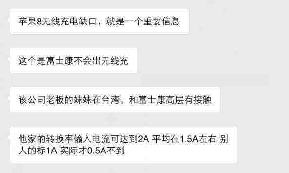 以上信息重点在“富士康不会出无线设备……”该怎么理解,较早前就已经被证实iPhone 8 的无线充电模组由富士康打造,是不会大规模的生产无线设备还是说苹果8配件中一件都不带?小编判断应该是前者。