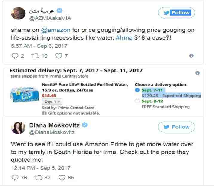 比如,一箱24瓶装的水平时的售价在6美金以下,一度被卖到了$20;另外一箱24瓶装的雀巢瓶装水,如果选择加快运送,运费高达$179!