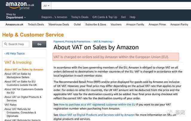从去年开始,似乎Amazon在欧盟税务局的压力下开始要求卖家必须自己注册增值税号码(VAT)和欧盟进口号(EORI)。看上去这像是平台要求,而从税务法规而言,Amazon已经在要求各个卖家自己承担在欧盟所有税务责任。