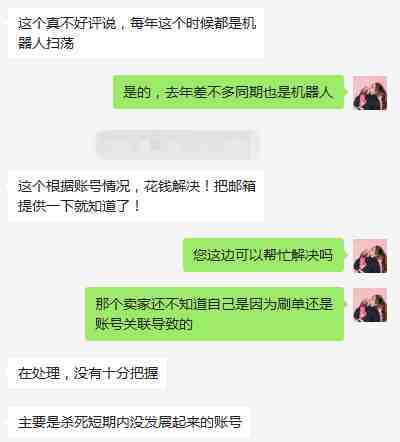 有资历的卖家一定记得,去年9月份轰动一时的亚马逊机器人封号事件。小编向正在处理“警告信事件”的卖家询问具体原因,对方表示“不好评说,每年这个时候都是机器人扫荡”。这位卖家正在想办法处理问题,但仍然没有十足的把握。但对于这一波警告信的目的,他认为“主要是杀死短期内没有发展起来的账号”↓↓