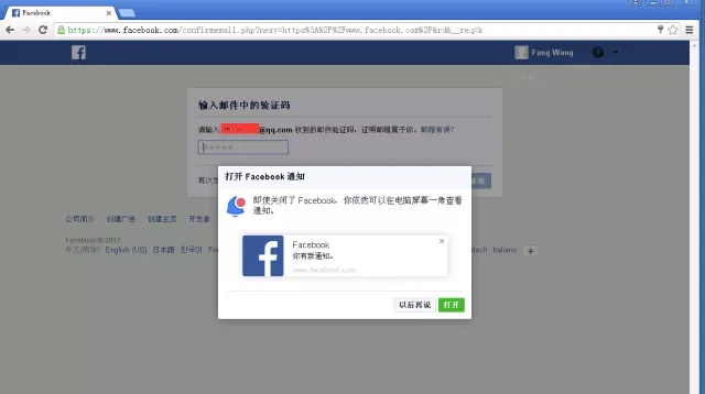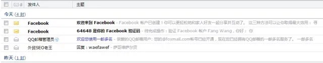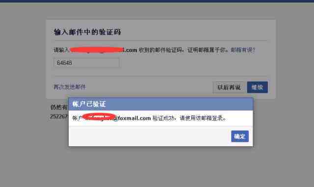 这个是我们能再回到facebook的注册界面,然后选择其他的邮箱来进行验证码的接收,很快我们就收到了验证码。
