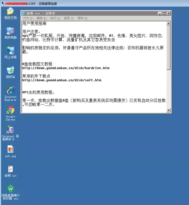 首先,我们有一台vps。然后直接远程登录操作。请注意这里我们不是用vps去搭建的vpn的服务器。是直接远程桌面进行操作的。