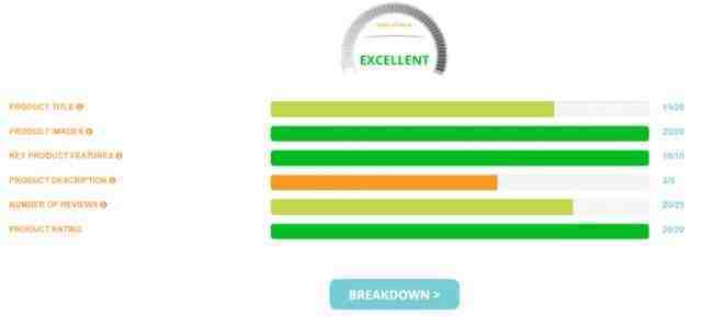 JungleScout Product ListingGrader(免费)是个不错的评分工具,能帮你对listing进行评估,让你即时了解哪里需要改进,如下图: