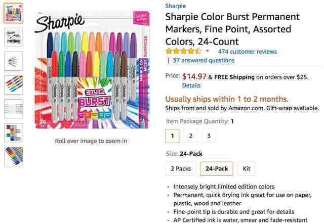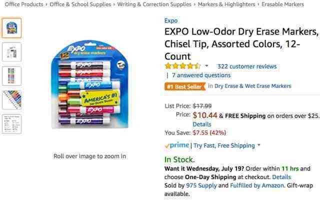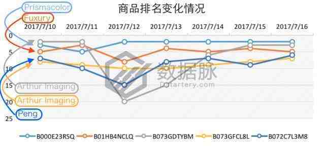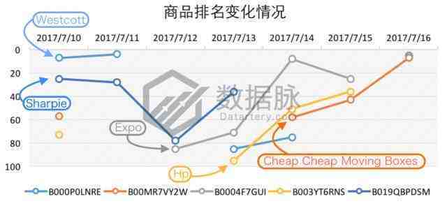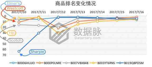而另一款品牌为 Sharpie 的彩色马克笔产品则在7月10日至12日三天中由榜单排名64位直接飙升至第2位,在该周的随后几天,该商品排名虽有小幅下挫,但基本稳定在 Best Sellers 榜单前五。