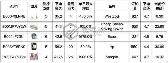 此外,Cheap Cheap Moving Boxes 的包装纸、Expo 的马克笔以及 Hp 的墨盒产品分别位列综合排名二、三、四位。