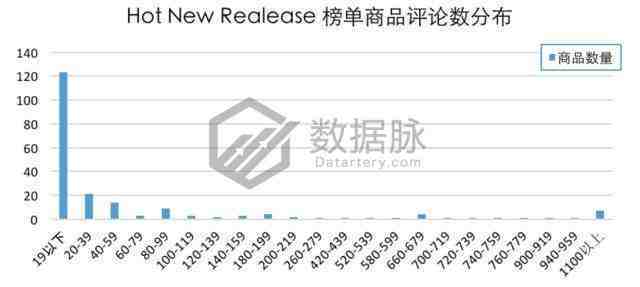 在上周登榜 Office Products 品类 Hot New Releases 榜单的商品中,单个商品拥有的最大评论数为9727.0,最小评论数为0.0条,平均评论数257.1条,评论平均星级4.31星。骆探长(shujumai.com)发现,相较于前几期分析,本期分析中 Hot New Releases 榜单上榜商品的评论量也有较大的回升。其中,虽然大部分商品评论数依然位于19条以下,占比59.13%,但明显地也出现了一些高评论的上榜新品——有7款商品评论数在 1100条以上,占比3.37%。