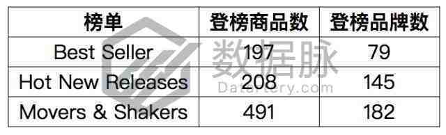 根据上周 Movers & Shakers 榜单上各个品牌下商品的登榜次数,我们对登榜的品牌进行了排序,其中排名靠前的五个品牌如下所示:
