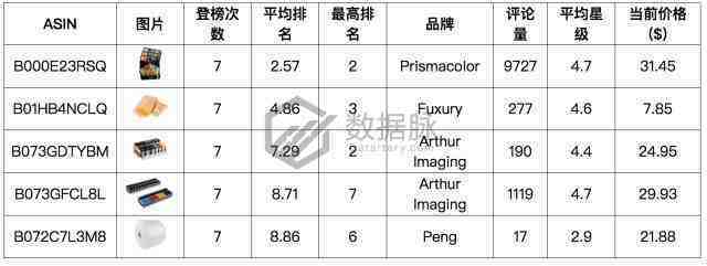 此外,在综合排名的较好的五款商品中,我们发现了两款来自于品牌 Arthur Imaging 的墨盒产品,其中配适型号270XL271XL的6件套墨盒产品在一周中四次位列 Hot New Releases 榜单前三,骆探长(shujumai.com)注意到,目前该产品仅有190条评论,与其兄弟产品28件套墨盒的1119条评论相差甚远,后续市场空间值得期待。