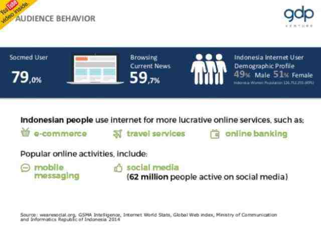 在互联网用户中,女性用户超过男性用户。女性用户占51%,而男性用户占49%。在智能手机方面,截止2018年底,印尼43%的用户将有智能手机。