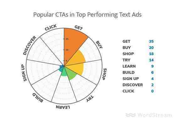 虽然CTA短语会根据具体情况略有不同,但企业希望潜在用户采取行动时,所能用的动词相当有限。分析了最受欢迎的非品牌文字广告后,结果显示最受欢迎的CTA词排名是(按每个动词在广告中出现的数量):