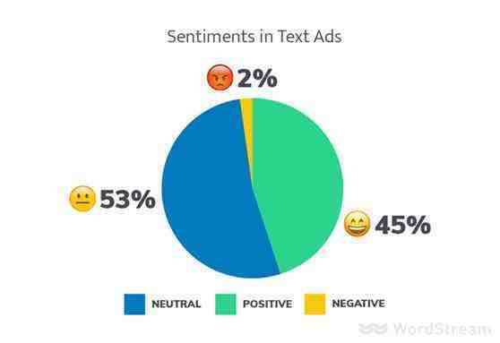 最终发现,有45%的广告文本传递的是积极的情绪,53%传递的是中立的情绪,只有2%传递了消极的情绪。
