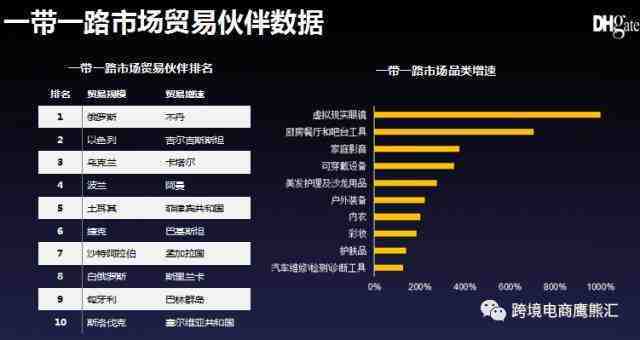 介绍一个特殊的市场,就是一带一路,一带一路对产品的需求量非常大,市场进入门槛相对比较低。这几年由国家发改委牵头的丝绸之路项目已经取得一系列实质进展,背后的宏伟蓝图一方面是要把沿线国家好的企业和优质产品引进中国,同时也要把中国的中小企业抱团带出去。去年一带一路沿线有30个国家增速都超过30%,有10个国家增速达到翻倍,远远超过欧美发达国家的水平。