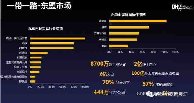 东盟市场,根据权威机构发布的数据,东盟核心六国的电商增速和中国类似,远超欧美发达国家。中国也是东盟最大的贸易伙伴,东盟也是中国第四大出口市场和第二大进口来源地。从行业来看,像服装配饰、户外运动、手机、手机附件和玩具增速都超过200%。东盟市场有6亿人口,8700万网上购物者,70%是35岁以下的年轻人,人均可支配收入的增长等都说明东盟市场是一个很好的市场。