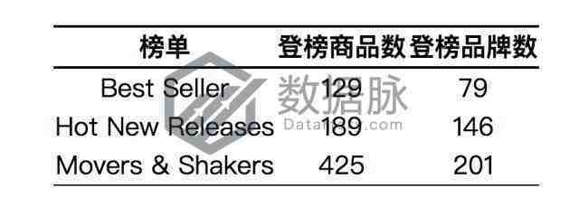根据上周 Movers & Shakers 榜单上各个品牌下商品的登榜次数,我们对登榜的品牌进行了排序,其中排名靠前的五个品牌如下所示: