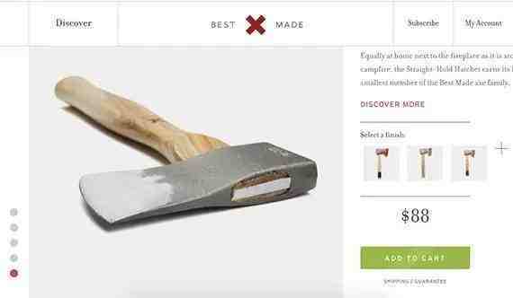 上图是美国著名户外生活品牌 Best Made Co.,所展示的8张斧头的图片,其中有三张是不同的角度展示,剩下的五张显示了斧头的成品全貌形象。