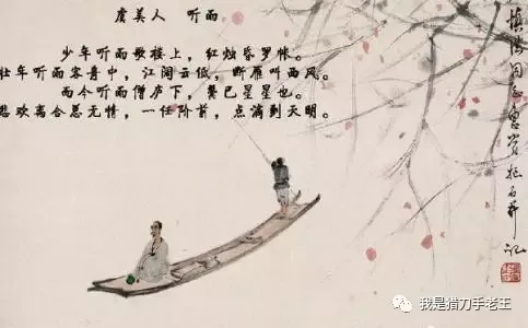 “少年听雨歌楼上,红烛昏罗帐。壮年听雨客舟中,江阔云低断雁叫西风。而今听雨僧庐下,鬓已星星也。悲欢离合总无情,一任阶前点滴到天明。”