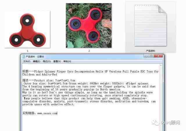 首先我们需要先把要上传的资料整理好(图1),主要准备的资料有图片(最多五张)、标题和描述,保存好资料,以便我们下次还需要这些产品资料。