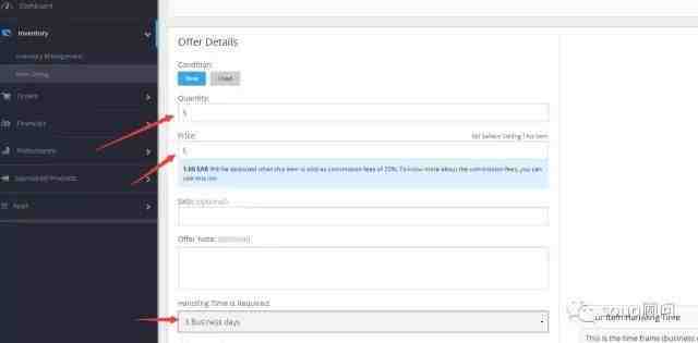 (图9)填写数量(可随意些数量)、价格、处理天数(没有备货的国内卖家最好选择三天)。点击下一步,提交就把产品上传了,但是还需要平台的审核。需要注意的是souq对产品审核是人工的,审核的时间一般在三天内,有时刚提交的产品就马上审核了。审核合格就可以在“Live on Site”,审核不合格就是在“Rejected”,还没审核的产品在“pending”。