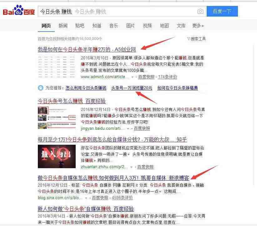 不信,现在你可以在百度上面搜索“今日头条 赚钱”
