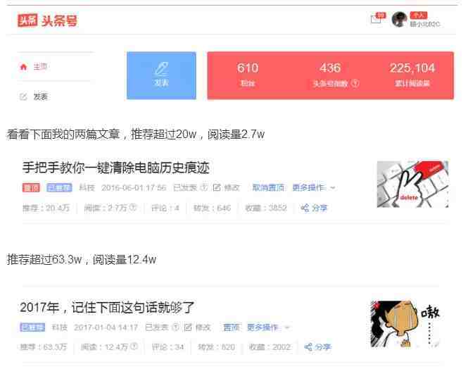 Ps:这里的简单,对我们这部分来讲,不夸张的说,并没有多大的挑战,但对一些新手来说,就不是那么容易的。(平台的算法,发布时间,文章的内容题材…..)