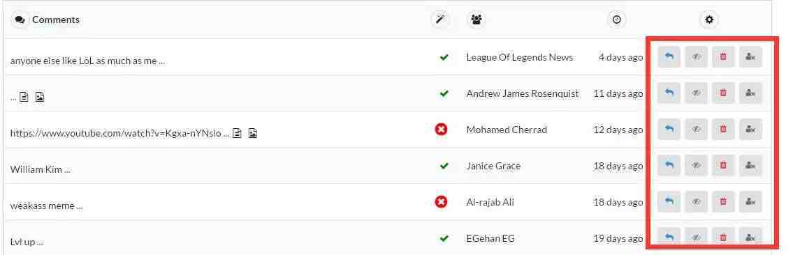 另外这个工具还有一个特别的功能就是可以在线回复用户的消息,删除评论,隐藏评论,以及在线block掉不喜欢的人(永久屏蔽),如下图所示: