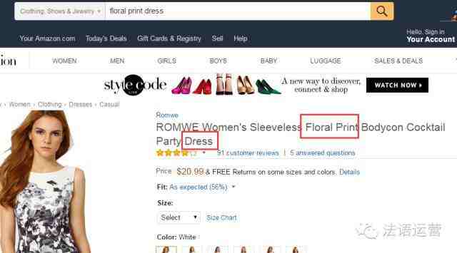 我是用floral print dress来搜的,然后我选了这家打开的,看下他们的标题,标题里就有floral print dress这个组合。
