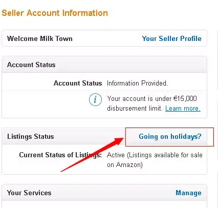 2、点击“Account Info”进去之后找到“Listing Status”下的“Going on holiday ”: