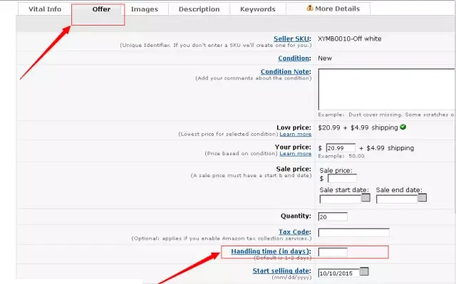 (登录卖家后台,点击Inventory > Manage Inventory > Action > Edit Details > Handling Time: 填写您需要的配送准备时间),如下图所示: