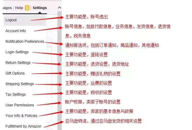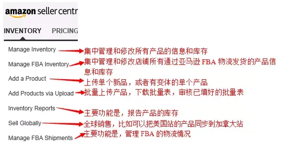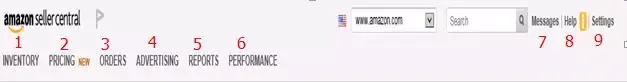 亚马逊卖家后台的主要按钮有九个方面,见下图: