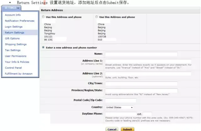 美国上线的卖家需填写美国当地的退货地址,不然可能会收到警告,严重的话会被暂停销售。 100%FBA的卖家可以不填写美国当地退货地址。