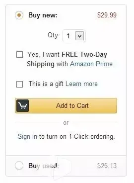 如下图所示,就是亚马逊的Buy Box , 这个位置是每一个买家在购物的时候,看到的最方便的购买位置。亚马逊在每一个商品刊登中选择一位卖家占据这个BuyBox的位置,而这位被选中的卖家宠儿则可以享受源源不断的订单和关注。