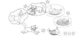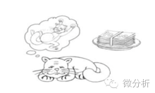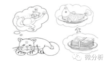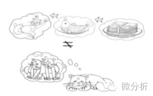 图4:猫吃饱喝足了,需求也就变了——它不想再吃东西了,而是想见它的女朋友了。那么销售员说:“猫先生,我这儿有一摞钱。”猫肯定没有反应。销售员又说:“这些钱能买很多鱼,你可以大吃一顿。”但是猫仍然没有反应。原因很简单,它的需求变了。