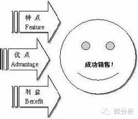 这个工具叫FAB法则。FAB是三个英语单词的缩写:F是Feature ,特点;A表示Advantage,优势;B呢,是Benefit ,利益。特点、优势、利益,这三个词连起来,用在销售上就是说:我这个产品有某某特点,这个特点会带来什么优势,给你产生什么利益。
