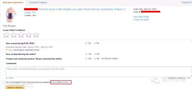 买家留评价一般都是用匿名,可通过Use a different name来修改。另外feedback的字数限制是400个字符,并且留feedback的时效是在下单后90天内,超过这个时间就留不了了。买家可通过Completed Feedback查看所有留过的feedback记录。Feedback可移除,但无法修改。