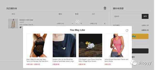 此功能适合零售卖家,特别是品类之间存在关联的网站。如客户将“鼠标”这类产品加入购物车,则页面会以弹窗的形式,自动推荐热卖的“鼠标垫”产品,通过关联营销,增加网站的销量。