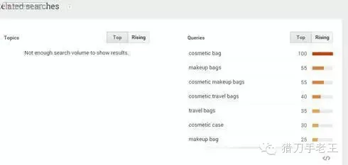 5.将得到的cosmetic bags,pouch等词输入 http://www.google.com/trends(谷歌趋势)搜索,会得到更多相关的推荐的关键词: