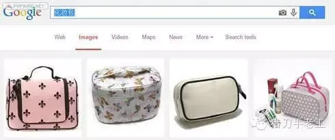 4.在翻译结果页,点击翻译结果,比如此处的"Cosmetic",还会得到其他翻译结果,将google翻译的翻译结果cosmetic,cosmetic bag等输入images.google.com进行搜索,与上面用中文关键词查询出来的结果做对比,你会发现,虽然“化妆包”推出的第一个翻译是cosmetic,但是cosmetic搜索出来的图片实际上是化妆品,不是化妆包。而cosmetic bag和关键词“化妆包”结果对应。将图片能够对应的几个关键词记录下来,进入下一步。