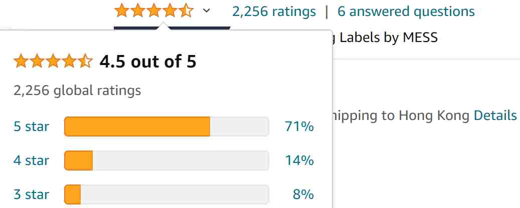 比起清洗费劲的标签纸,这款可溶标签30秒内便可溶于水,亚马逊上评论数达2256,五星评级率达71%,还是Amazon's Choice。