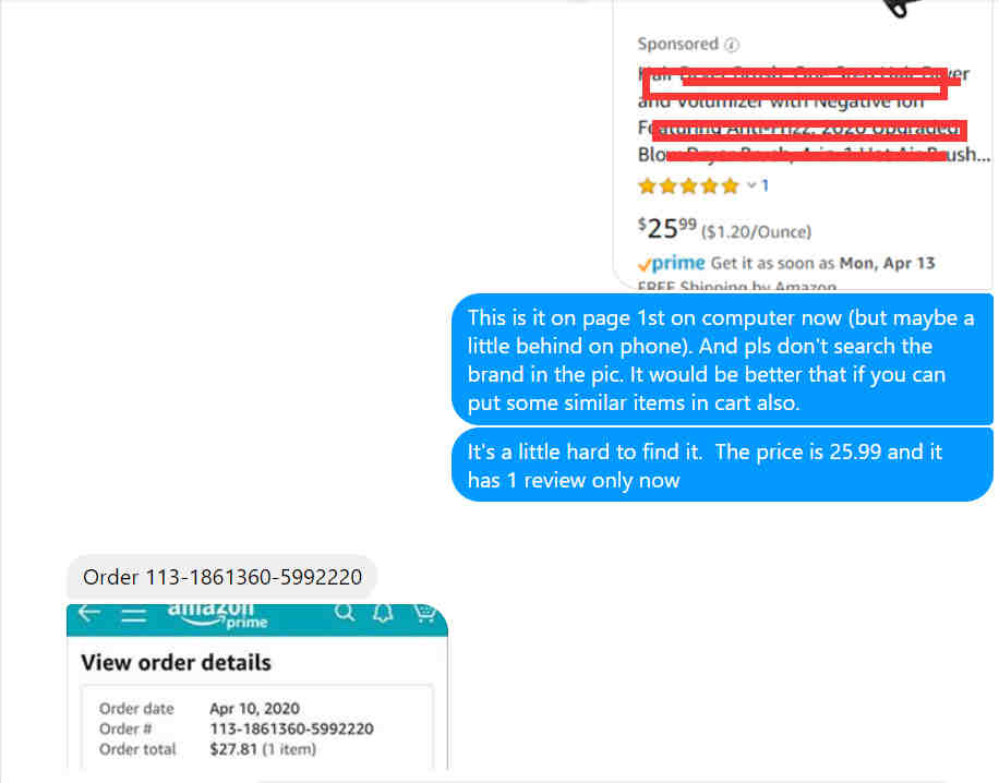 按指定关键词下单,可提供聊天记录,试单可看profile。