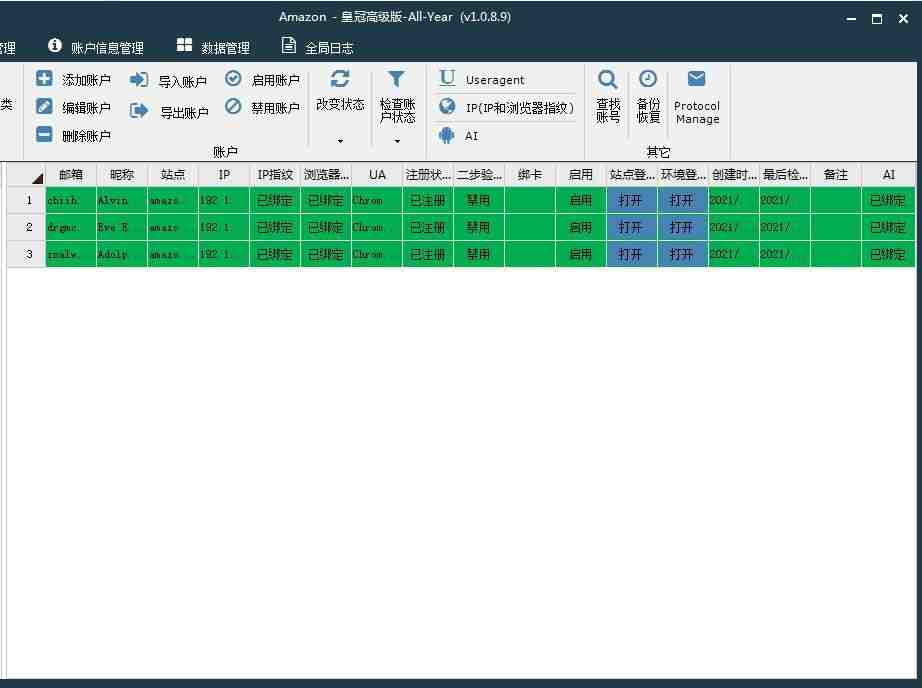亚马逊买家账号注册是很容易的,但如果你是批量进行注册的话,那就需要多注意一点防关联的问题了,想要又能防关联,又能快速拥有一批买家号,可以使用亚马逊皇冠进行操作,亚马逊买家号支持绑定代理ip及修改指纹,能让每一个账号都有独立的运行环境,达到一账号一ip进行运行的,这样就不会引起账号之间的交叉关联!