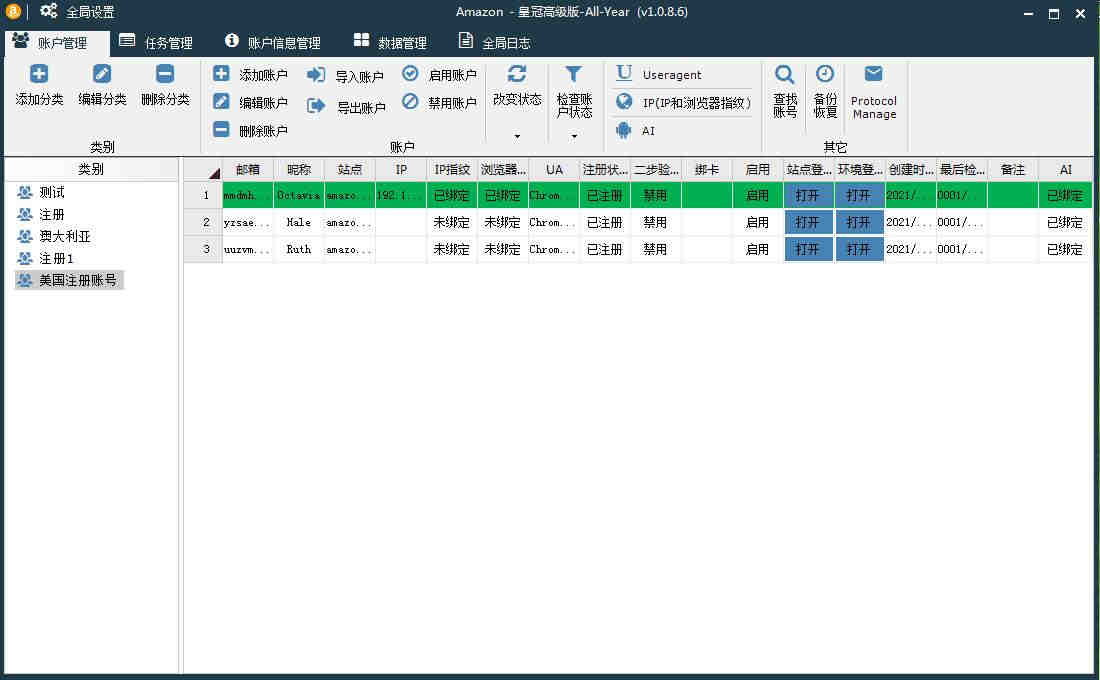 但是如果卖家操作来进行操作,就需要很多买家号才可以了,很多小伙伴刚开始会找很多个地方分别去运营这些账号来帮助自己的店铺提升排名,但是这时候就会特别繁琐,很多时间都浪费在人力和距离上,所以可以考虑一些账号管理工具给亚马逊账号一个独立的浏览器环境,可以考虑一下使用亚马逊皇冠软件,亚马逊皇冠可以批量注册及管理买家号,能保证每个账号都是独立运行的!