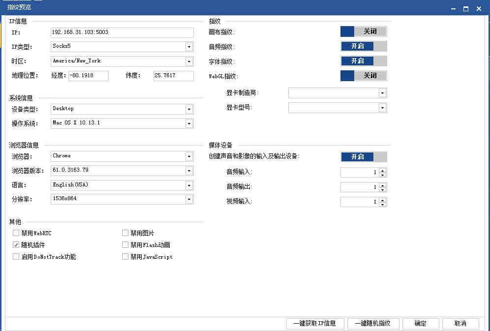 不过也不需要担心关联问题,因为软件有反指纹技术,可以自定义ip及浏览器指纹环境,可能有的朋友不太懂什么是浏览器指纹,举个简单的例子,当我们在常用设备上登入网络账号一般只需要输入账号和密码就可以了,但是如果有一天你换了一个新的设备登入账号,网络平台就可以检测出这些异常的行为,这就是因为你的浏览器指纹特征发生了变化。为了防止你的账号出现风险,平台会要求你进一步的做授权验证,在检测账号关联时ebay平台也利用了这个浏览器的指纹特征这项技术,通过分析两个账号使用浏览器、插件、字体、操作系统等,判定两个账号此时是否是同一个人在运行,进而判断两个账号之间是否存在关联。因此反指纹技术就是为了修改有关浏览器的信息,比如UA、时区、字体、语言等通过分析这些具有辨识度的信息,来达到防关联!