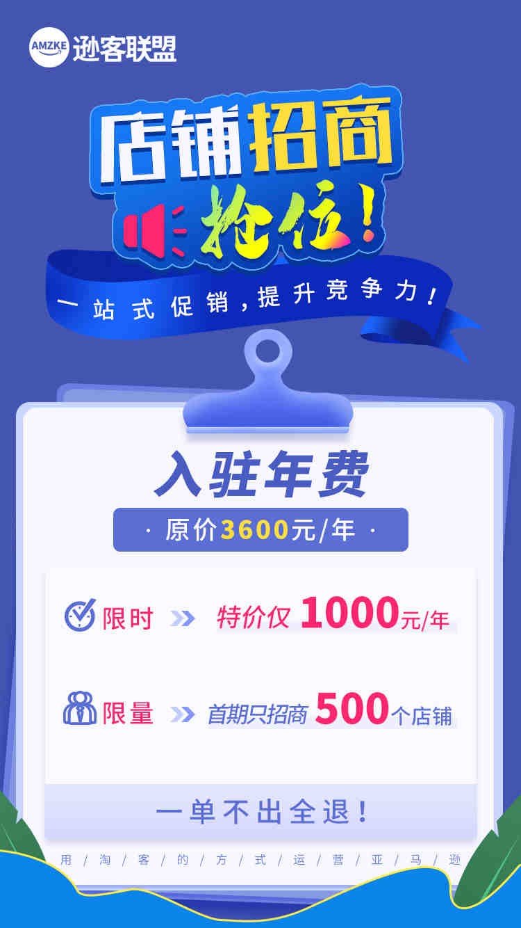 为了解除卖家的顾虑,AMZKE逊客联盟推出了最新的招商模式——店铺招商,给予卖家推新品、促爆款的一站式促销神器,安全、可靠、划算。
