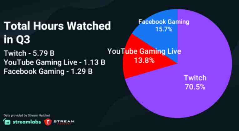 放眼海外游戏直播市场,Twitch、YouTube Gaming 和 Facebook Gaming 等 3 个头部玩家几乎占据了多数份额,留给中小直播平台的生存空间非常有限。与此同时,头部玩家之间的差距也在逐渐拉开,剩下的厂商要想突围也是困难重重。根据 Streamlabs 和 Stream Hatchet 发布的报告,2021 年 Q3,Twitch 的累计观看时长达到了 57.9 亿小时,而 YouTube Gaming 和 Facebook Gaming 中这一数字分别是 11.3 亿小时和 12.9 亿小时,前者占据了头部游戏直播市场 70.5% 的市场份额。Twitch 的遥遥领先,无形中拉低了余下厂商增长的天花板。