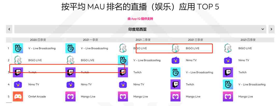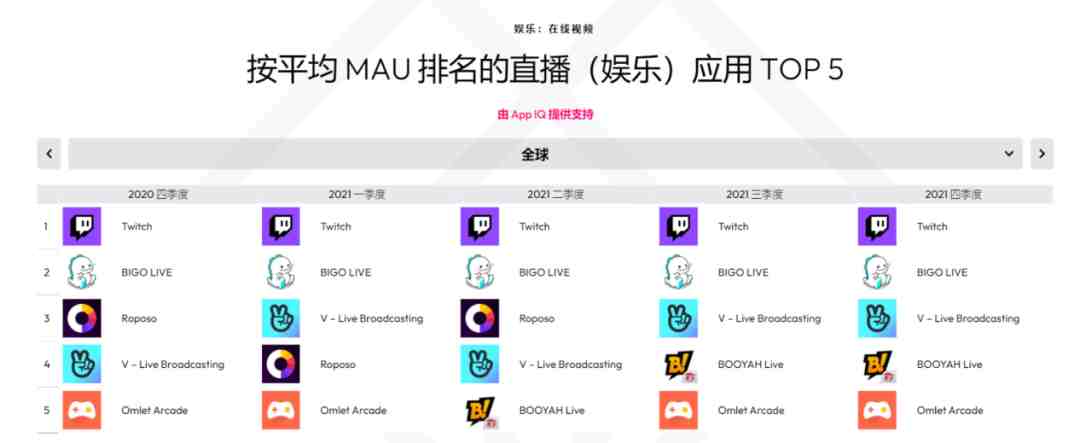 2021全球直播市场 MAU TOP5 榜单游戏直播平台 Twitch 稳居第一,BOOYAH Live、Omlet Arcade 也均有上榜(数据来源:Data.ai)而 BOOYAH Live 能够坚定投入,背后也是有资源加持的游戏厂商。
