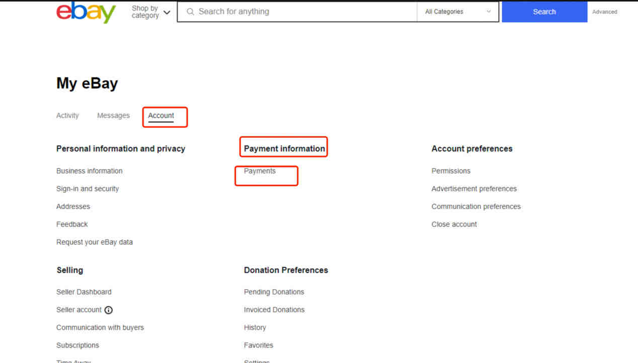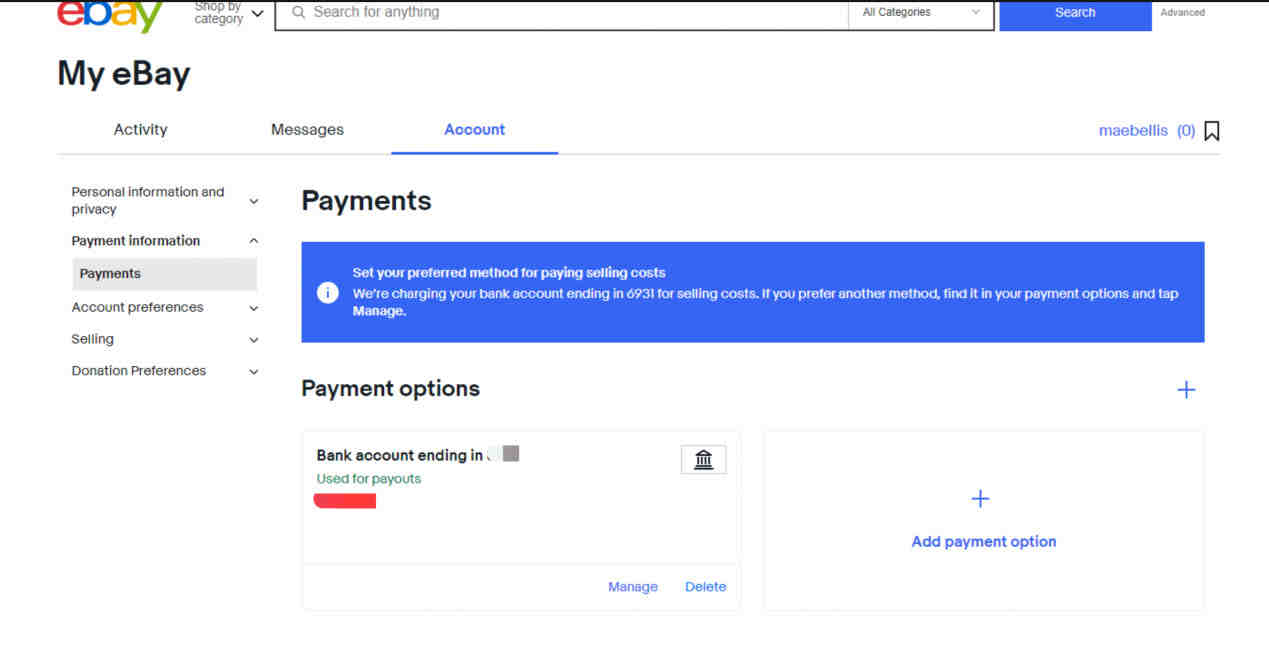 3、登录您的eBay账号,依次点击【My eBay】--【Account】--【Payment Information】--【Payments】--【Add payment option】--【Bank account】。